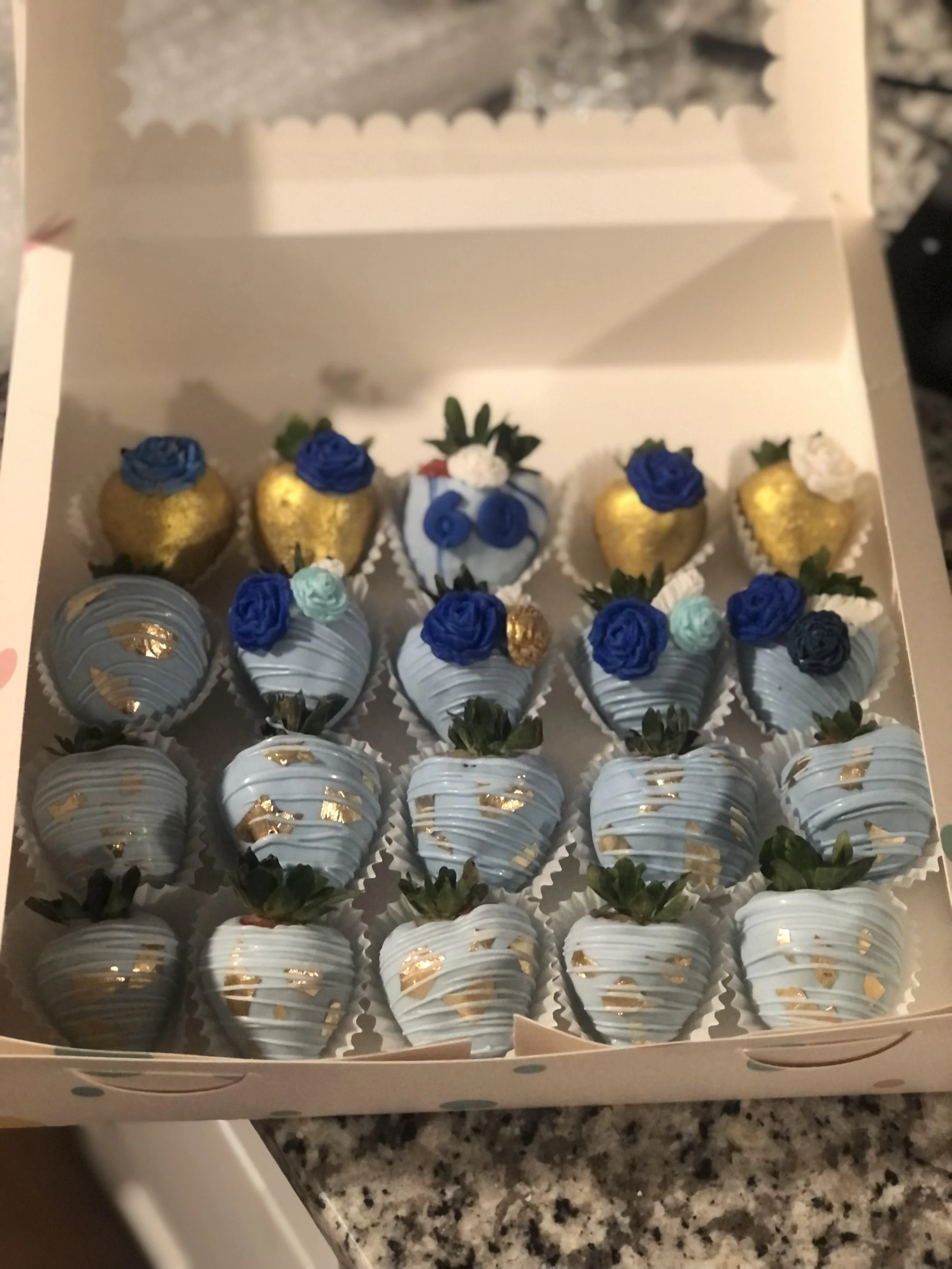 We take much pride and time in creating our custom strawberries. They are made with fresh, ripe, and hand picked berries from our local farmers and markets. Only the best white chocolate and finest oil colors can bring these berries to life!!!!